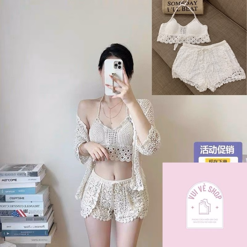 🔥 Set Bộ Bikini Len Móc Bộ Đồ Bơi Nữ 3 Món Có bán Lẻ Freesize Bra Dây Cột ĐI Biển Mùa Hè 2023 Hottrend (23_ đang giảm giá!